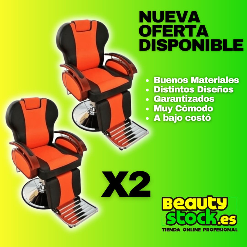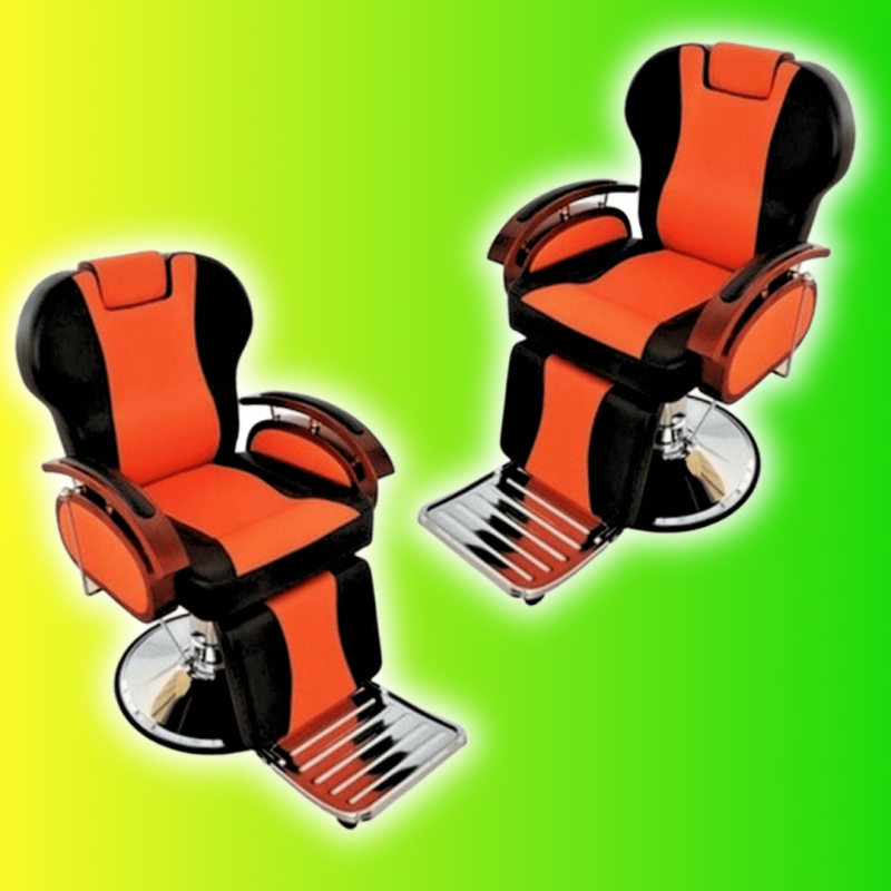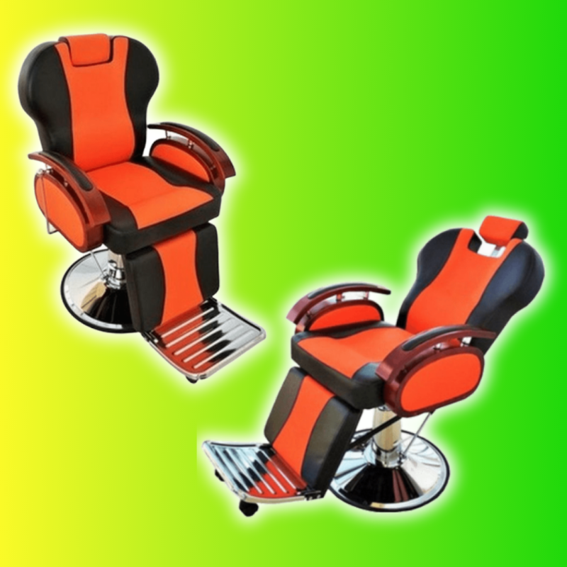 SILLON BARBERO MODELO S19 TAPIZ NARANJA Y NEGRO