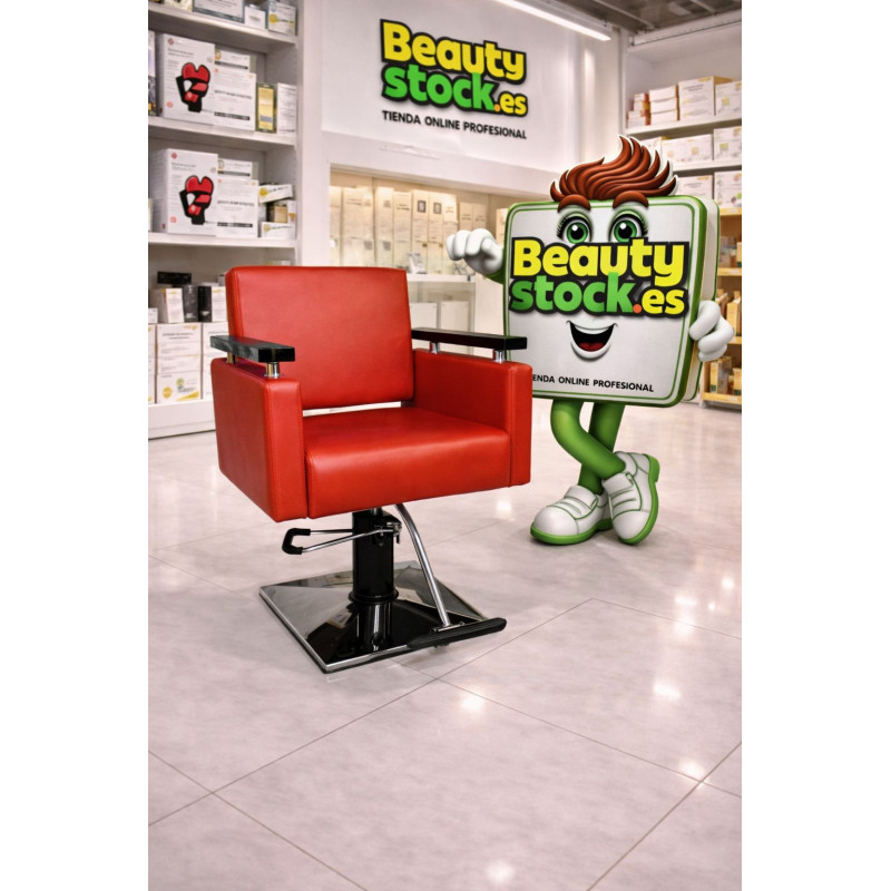 Sillón Argos para peluquería color rojo, fabricado en polipiel, tapicería de alta calidad. Un estilo muy definido para peluquerías que quieren destacar con el mobiliario, una combinación perfecta de tapicería en color rojo, apoyabrazos en color negro y detalles en metal. Diseño y pie cuadrado, con detalle en metal, elevador hidráulico con freno. Líneas actuales en el diseño, sin renunciar a la comodidad para el cliente, especialmente para que se relaje, mientras peinas o tiñes el cabello. Sillón para peluquería color rojo, ideal para peluquerías, que buscan diseño y comodidad para sus clientes. Si eres un profesional de la barbería o peluquería, inscríbete en nuestra tienda especializada online y, ¡Aprovecha las promociones y ofertas, que te ofrecemos!