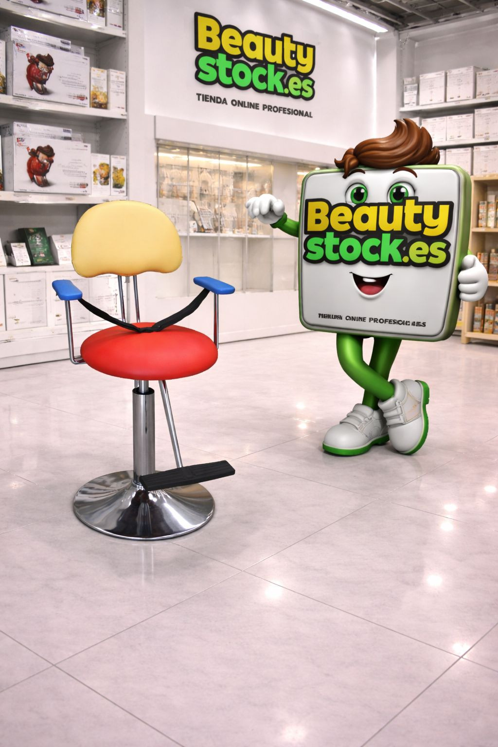 Sillita Infantil Kids para peluquerías/barberías, diseño actual y muy cómoda, para que puedas ofrecer en tu peluquería el mejor servicio de corte de pelo para niños. Haz que se sientan cómodos y disfruten de su visita a la peluquería, Fundamental para que puedas cortar el pelo, en las mejores condiciones.