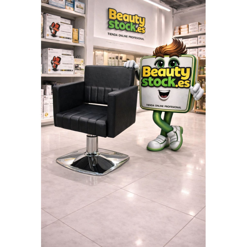 Sillón Erato tapiz negro aguas, para peluquería, un sillón para barberías o peluquerías, con unas líneas de diseño muy cuidadas, rectas y elegantes. La tapicería tiene unos detalles, que marcan la diferencia y que sin lugar a dudas, es uno de nuestros sillones líderes en venta. Diseño y pie cuadrado, fabricado en polipiel, tapicería de alta calidad. Define y completa el estilo de tu peluquería, con este sillón, para conseguir una armonía en el diseño, si estás buscando asesoramiento, contáctanos, te ayudamos a tomar la mejor decisión. Sillón para peluquería, con elevador hidráulico con freno, cómodo y de excelente calidad. Si eres un profesional de la barbería o peluquería, inscríbete en nuestra tienda especializada online, y ¡Aprovecha las promociones y ofertas, que te ofrecemos!