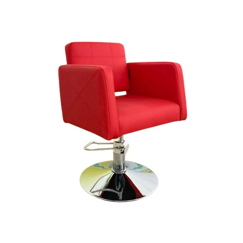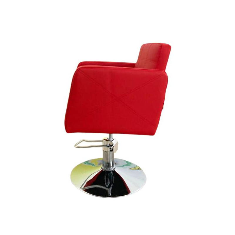 Diseño cuadrado, pie redondo, detalles de costura que le hacen moderno y muy elegante, ideal para pelquerías con estilo propio. Si estás montando tu peluquería o quieres renovar el mobiliario, este sillón es la elección perfecta.