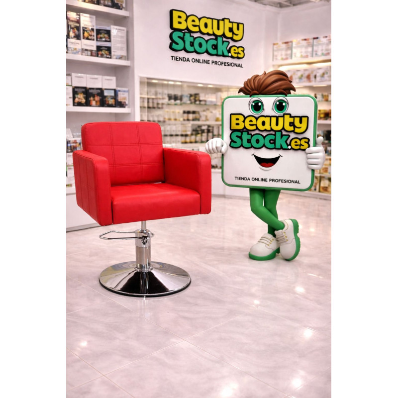 Sillón Afrodita tapiz rojo, fabricado en polipiel, tapiceria de alta calidad. Si estás buscando un sillón para barbería o peluquería top, este es el ideal, diseño y comodidad, sin renunciar a la calidad, además, puedes realizar tu compra online y recibir cómodamente en tu peluquería. Diseño cuadrado, pie redondo, detalles de costura que le hacen moderno y muy elegante, ideal para pelquerías con estilo propio. Si estás montando tu peluquería o quieres renovar el mobiliario, este sillón es la elección perfecta. Elevación hidráulica con freno, excelente relación calidad/precio. Si eres un profesional de la peluquería o barbería, inscríbete en nuestra tienda especializada online, y ¡Aprovecha las promociones y ofertas, que te ofrecemos!