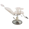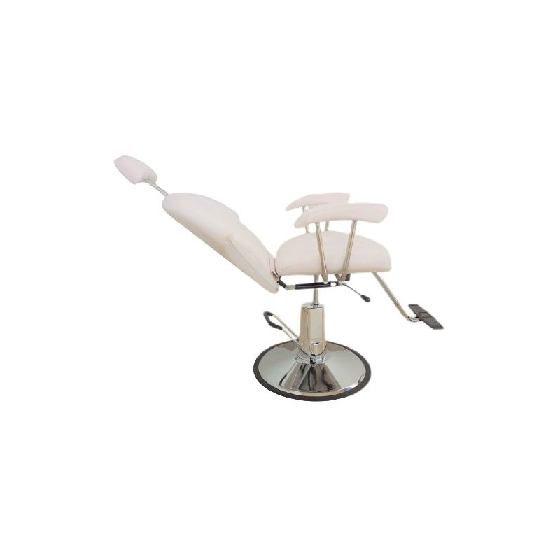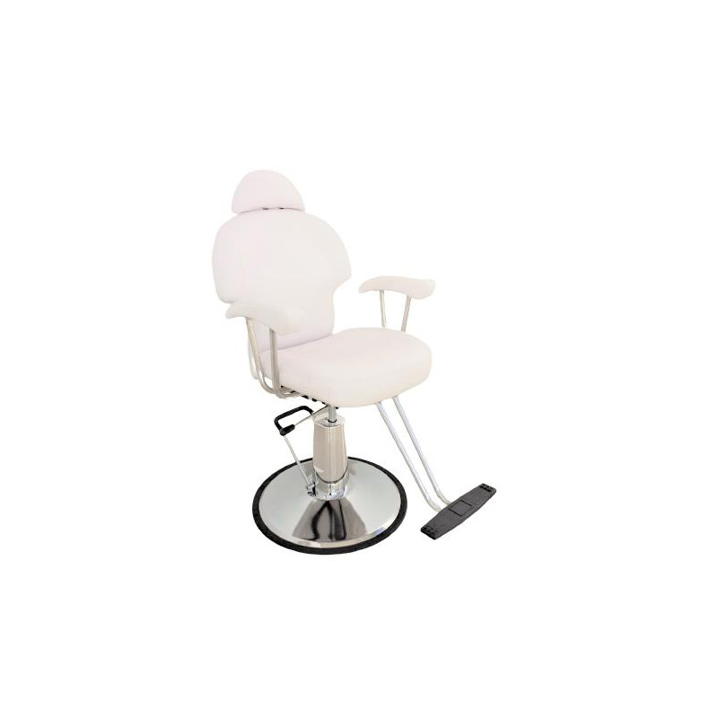 Sillón de maquillaje / barbero Ares, robusto, con respaldo reclinable, tapicería de alta calidad, en color blanco. Con apoyabrazos y apoyapiés para ofrecer la mejor comodidad a tus clientes, base redonda y líneas de diseño actuales. Bomba hidráulica ajustable en altura, giratorio y elevable. Un sillón de barbería que cumple con todos los requisitos, para ser el sillón ideal para tu barbería, diseño sin renunciar a la calidad. La mejor relación calidad/precio. Estilo moderno, sillón para barberías, con detalles en metal. ¡Compra online de una manera rápida, sencilla y segura. Si tienes alguna duda, contáctanos, te atendemos personalmente! Si eres un profesional de la barbería, inscríbete en nuestra tienda especializada online, y ¡Aprovecha las promociones y ofertas, que te ofrecemos!