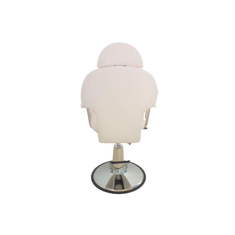 · El sillón para maquillaje modelo S08B en color blanco ofrece robustez, diseño moderno y comodidad. Su respaldo reclinable, tapicería de alta calidad, apoyabrazos y apoyapiés, junto con base redonda, garantizan una experiencia confortable para los clientes. La bomba hidráulica ajustable, giratorio y elevable, aporta versatilidad al profesional. Apto tanto para maquillaje como sillón para barbería