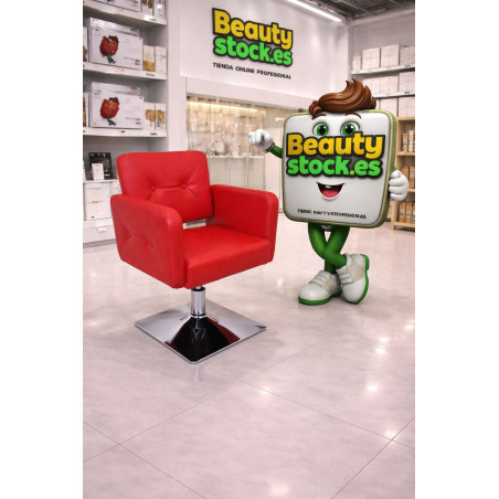 Sillón de peluquería atenea, fabricado en polipiel, color rojo, diseño y pie cuadrado. Si estás buscando diseño, comodidad y calidad, no puedes dejar pasar la oportunidad de comprar este sillón para peluquería, al mejor precio. Con botones, que le hace un diseño elegante, detalles en metal, diseño y pie cuadrado, que le otorga elegancia y con el que conseguirás, un diseño diferenciador en tu barbería o peluquería. Sillón para peluquería profesional, elevación hidráulica con freno, excelente relación calidad/precio. Rodéate de profesionales del sector, si eres un profesional de la barbería o peluquería, inscríbete en nuestra tienda especializada online, y ¡Aprovecha las promociones y ofertas, que te ofrecemos!
