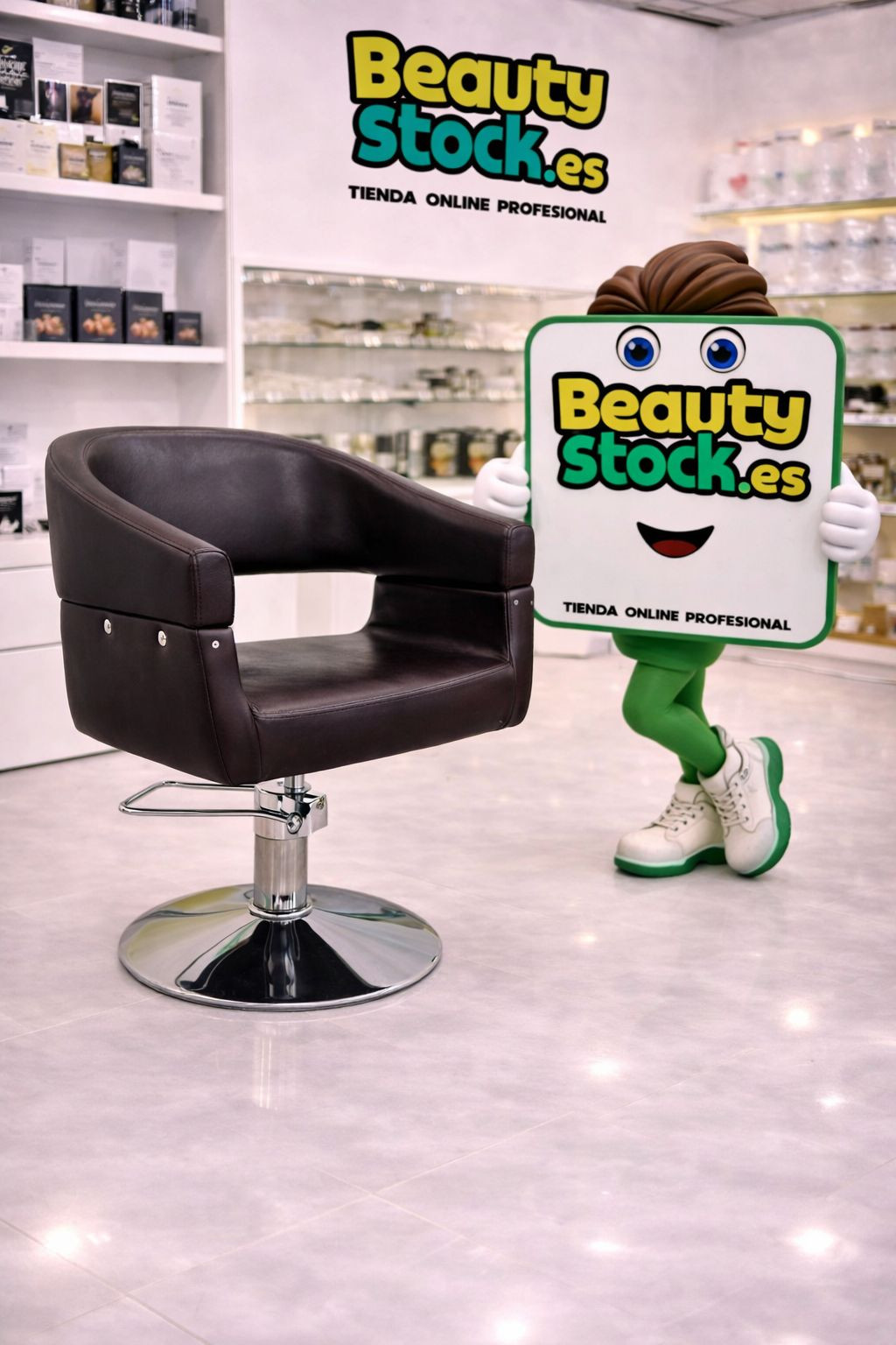 Sillón Cocito, tapiz marrón, fabricado en polipiel, tapiceria de alta calidad. Este sillón de peluquería, es ideal, ofrece todo lo necesario, diseño, comodidad y calidad, para que puedas ofrecer lo mejor a tus clientes, comprando al mejor precio.