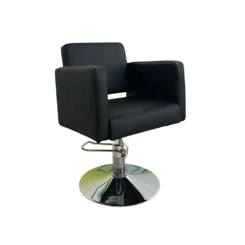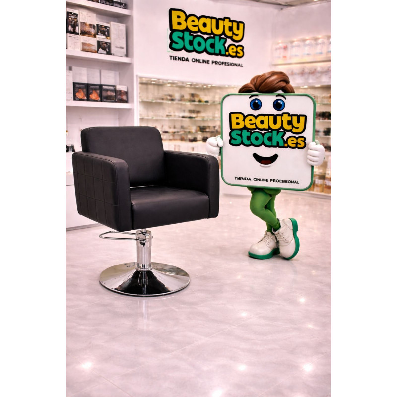 Descubre la elegancia y comodidad con el Sillón de Peluquería HARMONIA negro, con detalles de costuras y elevación hidráulica. ¡Transforma tu salón con estilo y calidad excepcionales en Beautystock!