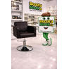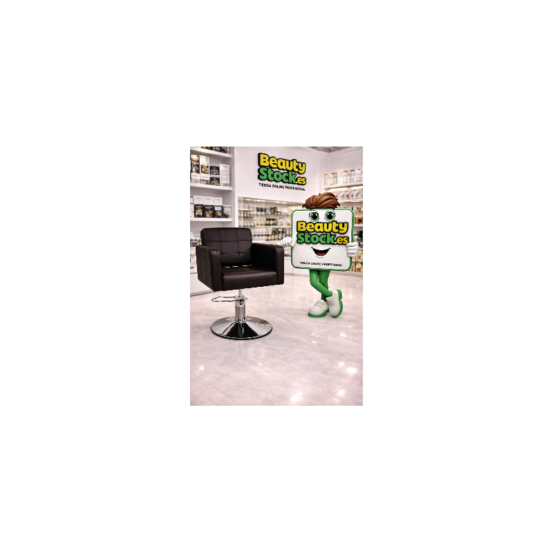 Diseño cuadrado, pie redondo, detalles de costura que le hacen moderno y muy elegante, ideal para pelquerías con estilo propio. Si estás montando tu peluquería o quieres renovar el mobiliario, este sillón es la elección perfecta.