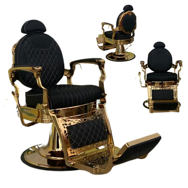 · El sillón de barbería modelo S80D destaca por su diseño premium con acabados dorados, ideal para barberías que buscan un mobiliario exclusivo y diferenciador. Su tapicería negra acolchada, respaldo reclinable, apoyabrazos y apoyapiés ofrecen una experiencia de máximo confort para el cliente.